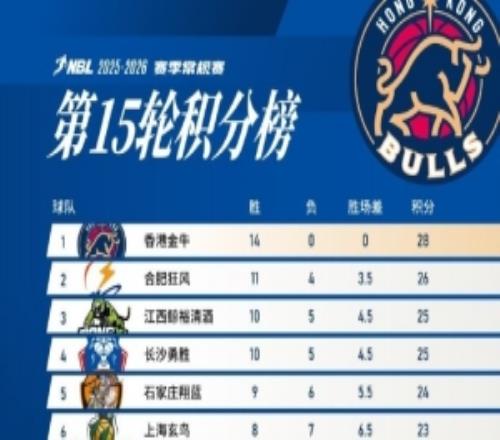 NBL常规赛第15轮战罢,香港金牛在少赛一场的情况下,凭借14连胜的战绩,积28分继续位列积分榜首位,也仍是联盟唯一...