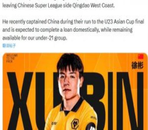 英超狼队官宣!U23国足队长徐彬加盟将外租+保留出战U21联赛资格