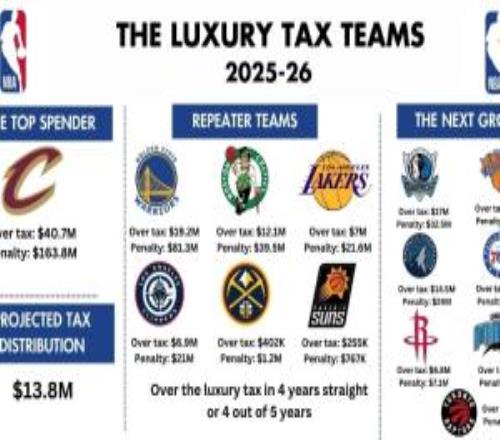 体育播报02月01日宣 ESPN知名薪资专家Bobby Marks更新动态,晒出一张2025-26赛季NBA球队奢侈税情况。具体如下...