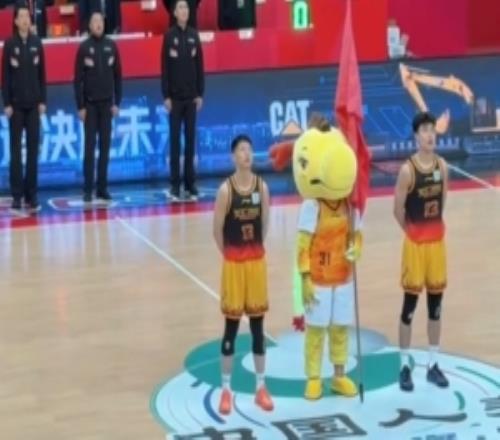 为肯帝亚男篮加油助威!江苏vs新疆比赛球员闫实、刘泽希领唱国歌