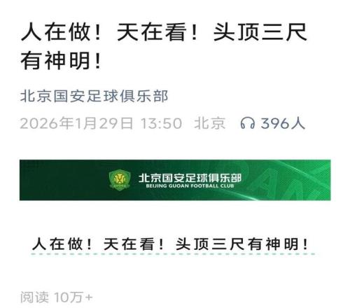 1月29日下午,北京国安官方社交平台悄然更新一则短讯,措辞凝练如刀,被外界普遍解读为直面中国足协的公开表态。