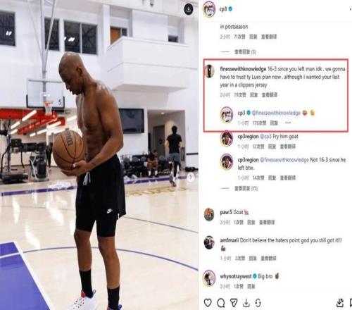 网友评论:自从你离开快船,我们取得了16胜3负。现在我们必须相信卢的计划,即使我希望你的最后一年能在快船结束。