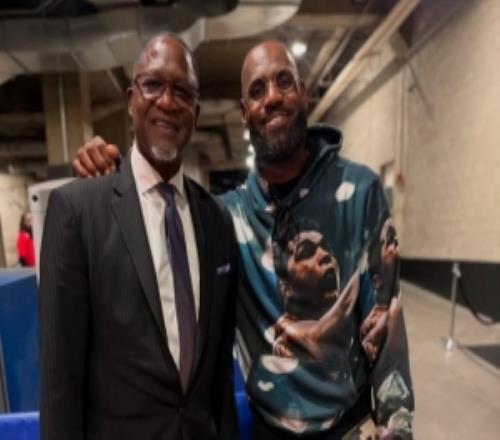 老鹰名宿威尔金斯和詹姆斯合影:赛后和你聊上几句很开心